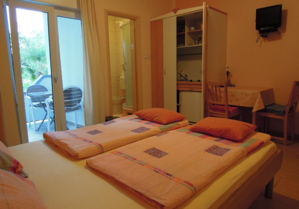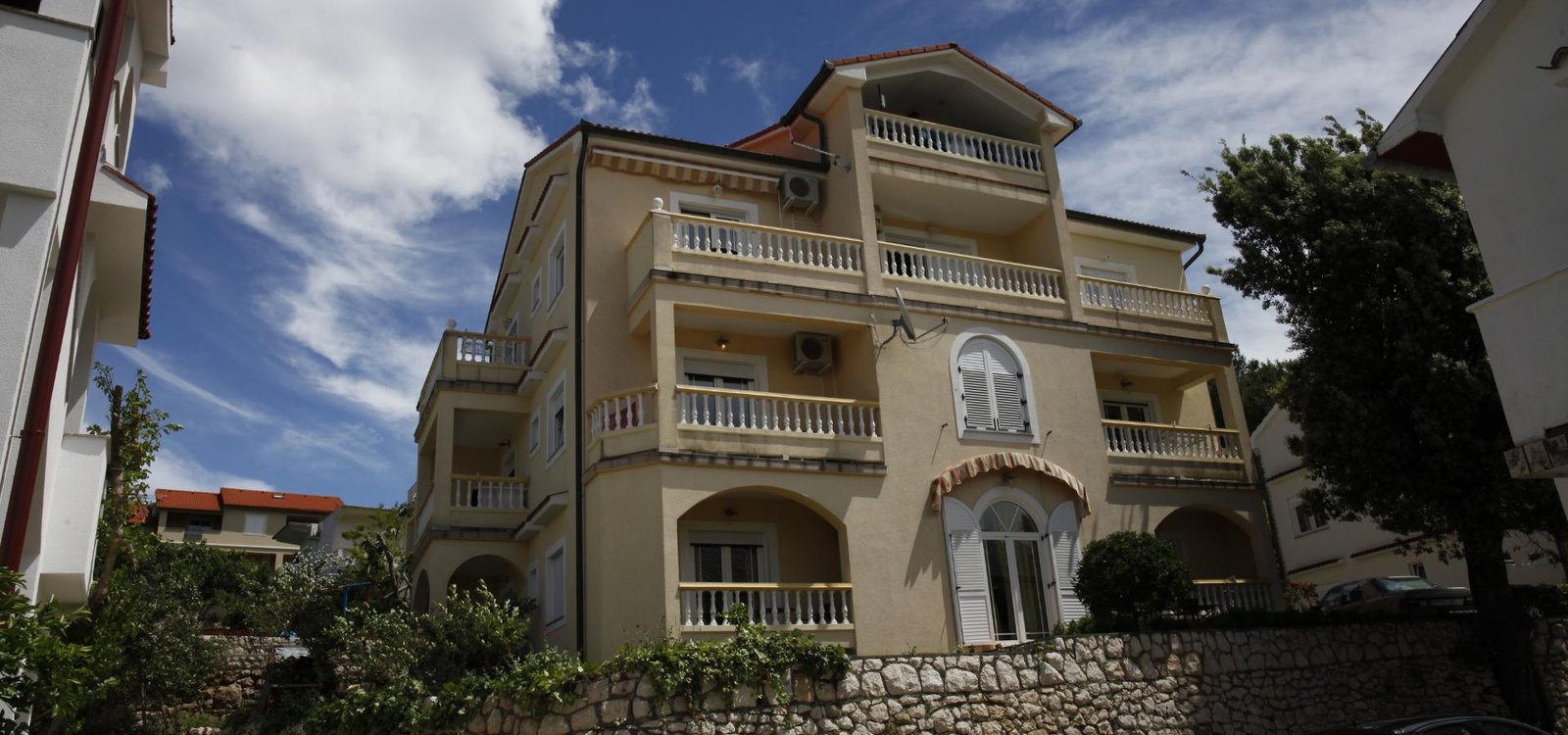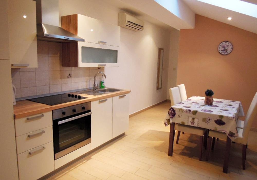 Svi naši apartmani klimatizirani su, imaju brzi Wi‑Fi, potpuno opremljenu kuhinju i vlastiti prostor za sjedenje na otvorenom, a Rajska plaža udaljena je svega nekoliko minuta lagane šetnje.
