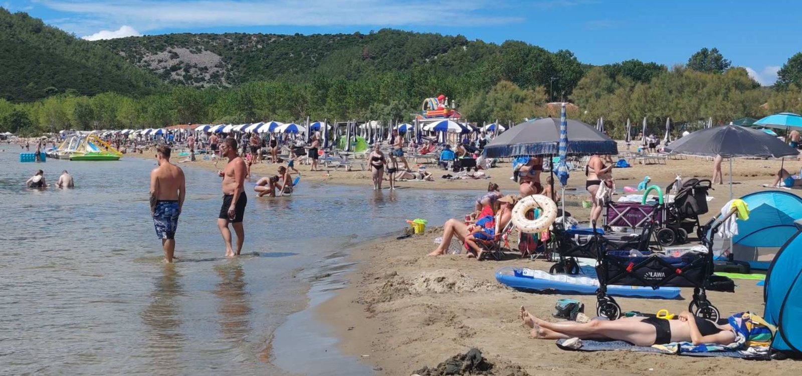 Uz obalu se nižu beach‑barovi, restorani, igrališta za odbojku na pijesku, aquapark, najam pedalina, jet‑skija i parasailinga, a južni kraj plaže označen je kao zona za kupače s kućnim ljubimcima.